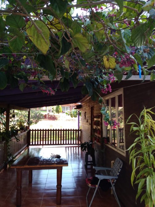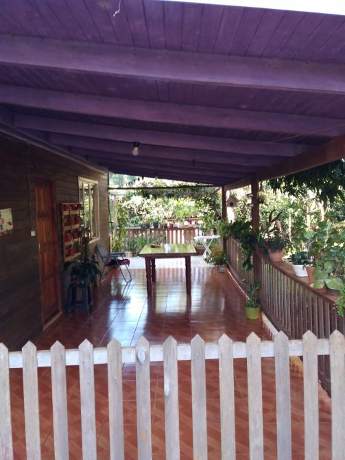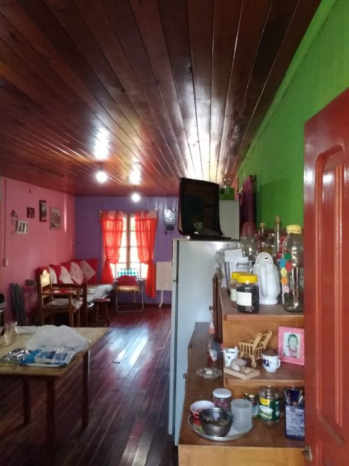 Construccion de madera con aberturas de madera , techo de cinc, baños de material.
