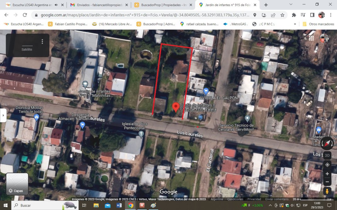 Lote de 20mts de frente por 45mts de fondo 900m2