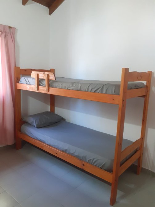 Primer piso: dos habitaciones (una con cama matrimonial y otra con dos cuchetas) baño completo