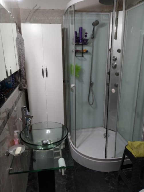 Baño completo de 2 x 1,50 m con vanitory y mampara de vidrio