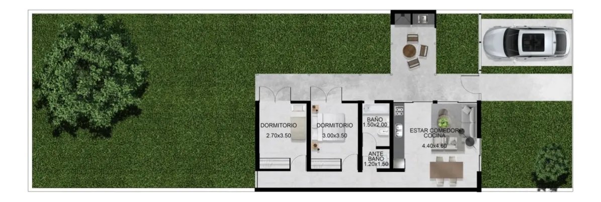 Compuesta por cocina comedor de 4,40m x 4,60m; 1 habitacion de 3m x 3,50m, segunda habitacion de 2,70m x 3,50m,baño de 1,50m x 2m; ante baño de 1,20m x 1,50m. bomba sumergible obra a estrenar .Con Escritura y (los planos otorgados por procrear)