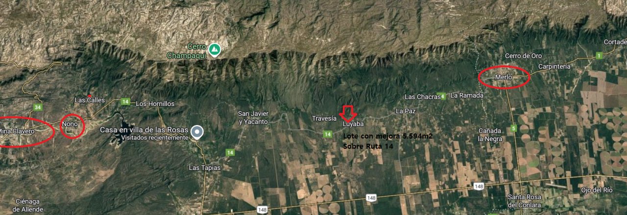 Lote el Luyaba, sobre ruta 14 camino entre Merlo y Nono, Cura Brochero .